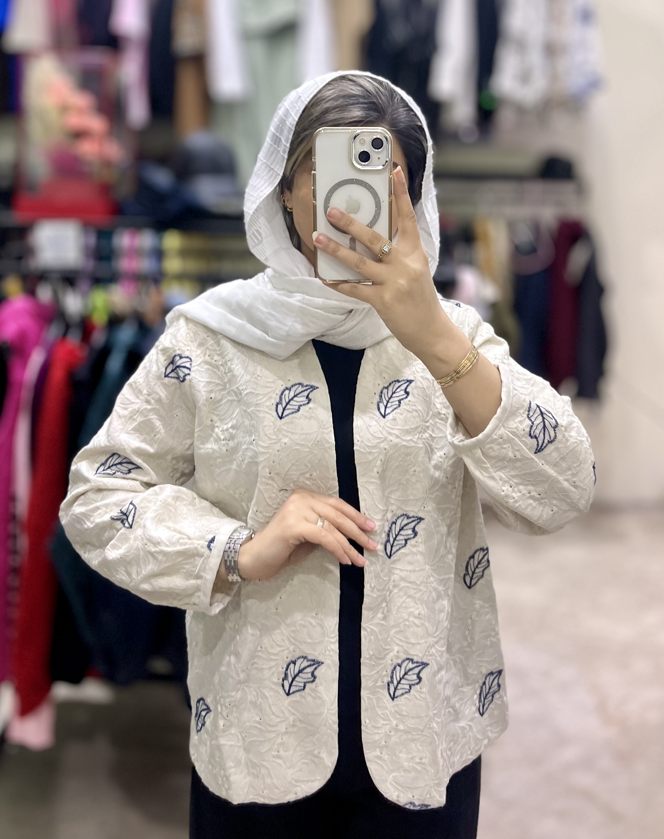 ناموجودمانتو کتی خامه دوزی شده طرح برگ زنانه