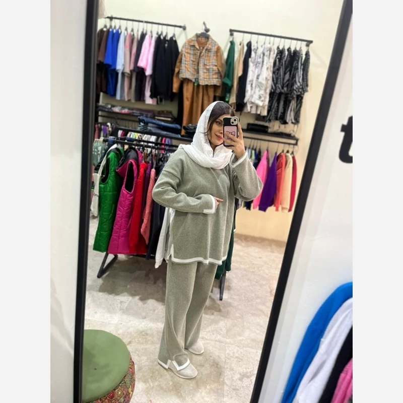 ست بافتمون با تنخور بینظیرش بغل چاک دار و در رنگ بندی مختلف مناسب سایز36تا48 دورسینه بدون کشش126 قد بلوز71 قد شلوار 104 دوربان شلوار بدون کشش106